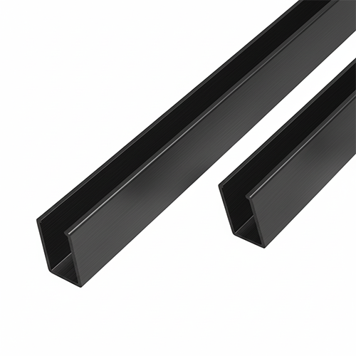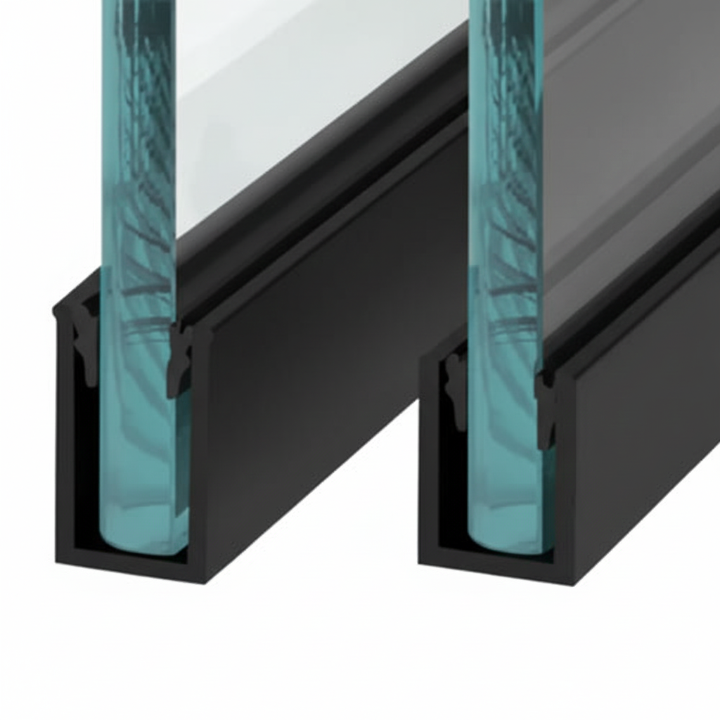 Uchanel alum. Para vidrio 8 mm . 3 mts largo. acabado NEGRO